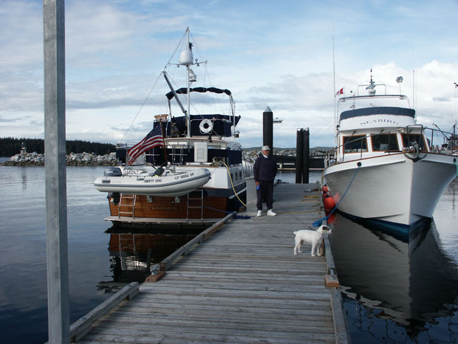 We walked up to the harbor master’s office to check in and a huge German Sheppard practically attacked us (Zig and I). I had to retreat backwards so fast that I almost fell. She (the harbor master) never said a word. No apology, nothing. What a different world up here.
