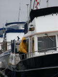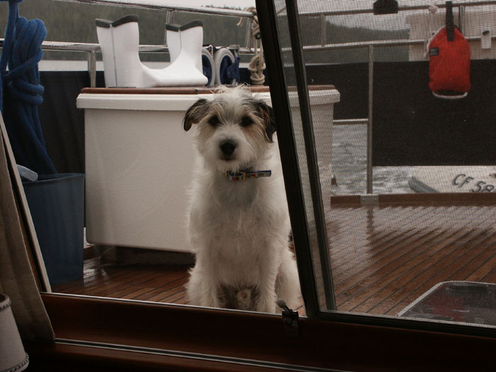the Indians get on your boat) We said “so long” and had a little snack with some hot tea. We watched the news on TV, another bombing in Israel and they found the skeleton of Shandra Levy. We’re certainly not missing anything interesting as it’s pretty much the same as when we left. We had our grilled steaks for dinner. We took Ziggy out after dinner for a final little spin in the dinghy but it was raining and not too much fun. It has been raining all afternoon and the windows are foggy. The temperature is 48 degrees and the pressure is 1021.7.