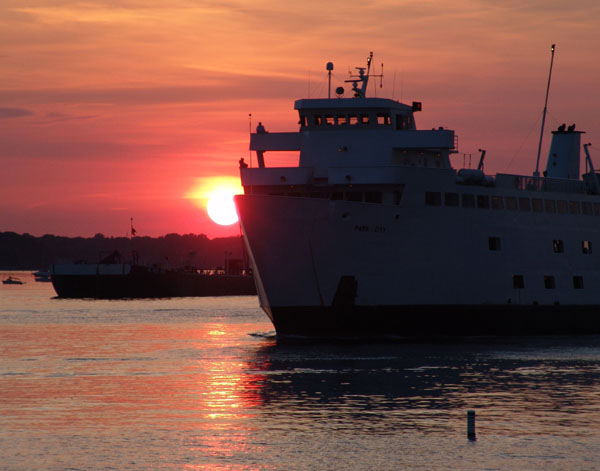 THE WORLD WALKED BY We decided we‘d spend a nice quiet evening in. I‘d make pasta, as that was the easiest, and just watch the world go by. Well, that is an understatement, as the world literally walked by. The marina was full of boats now, and people are on the backs of their boats, sunning themselves as if it didn‘t matter about the sun rays. Guess those long winters makes them starve for laying in the sun. The main destination in town seemed to be walking down to the end of the docks to the gazebo and gazing at all the boats in the marina and also those on the moorings. We saw a bride and groom walk by accompanied by the wedding group. We saw families, couples, lonely single mean and women looking for someone to meet, and people walking their dogs. The tourist paddle wheel boat would come and go filled with people laughing and drinking and the ferries were a non stop sight, coming and going like clock work. The ferries were big white massive things, stealth like even though painted white. How ominous they would look if black. One was named P.T. Barnum. The ferries are part of the Bridgeport & Port Jefferson Steamboat Company. They cross the Sound almost on the half hour daily starting at 6:00 AM and ending at 9:30 PM, in season. So when you are at the marina, that‘s part of the scene so you can‘t let it bother you when the wind turns your way and you smell the exhaust or you jump when they blast the horn upon leaving. The ferries date back to the 1880‘s when P.T. Barnum started the business. He kept his circus animals here in Port Jefferson in the winter and would shuttle them back and forth to Bridgeport, CT on the ferry. Can you imagine that? An elephant, or giraffe or even a tiger riding the ferry? I can‘t. We spent the rest of the evening, along with others walking