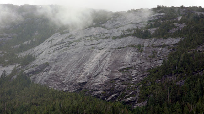 We could hear birds sing and distant waterfalls inside the forest hidden amongst the trees and rock. I bet it is beautiful at the head of the Khutze Inlet where the waterfall is. We saw another boat come in late evening just before and head down the inlet as there obviously wasn’t enough much space for him where we all were. He never came back out while we were there so must have had good luck with the anchoring.