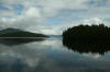 OH, THAT REID PASSAGE If you check our Alaska Trip 2002 log you’ll see we had a hair rising experience going through that rocky narrow passage when our steering locked up and we were heading strait towards the rocks with zero showing below us on our depth sounder. So we both had a lot of anxiety thinking about going through again and this time with a bigger boat. It shouldn’t be any problem though. Seaforth Channel is so calm that now we’re thinking about skipping Reid Passage and going on the outside to save time but as we get closer we see elephants on the horizon. That means big swells and seas. As we head further down Seaforth there’s a white dot in the distance and it looks at first almost like a spot of sunlight. It’s a cruise ship though. Larry said it makes sense to see one about this time because they leave Vancouver on Saturday nights so that would be about the time they would be passing this area. We see dull patches of sunlight coming through the clouds. I hope the sun will come out. It’s been pretty dreary around here lately. We’re gaining on Mary One but I ask Larry to slow down so they can go through Reid Passage first. It’s always more interesting to have a boat ahead of you in your pictures for scale. Otherwise it’s just more trees, mountains and water. It’s such a pretty area that we will be going through that I thought it would be nice to see a boat in the picture too. LET’S GO ON THE OUTSIDE, HECK WITH IT As we got closer to Ivory Light we decided to go on the outside as it was so calm out, so Larry calls Mary One and tells them we’re leaving them at this point and wishes them good cruising. Mary One asks us to call them back at some point and let them know how the seas are out there on Milbank Sound.