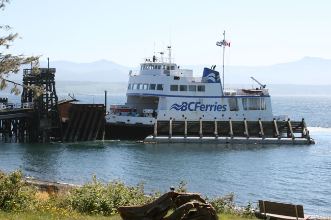 ISLAND FERRY As we got closer to the village we could see one of the small island ferries heading this way across the Queen Charlotte Sound. I love those little ferries, just small enough to look cute but just big enough to carry a couple cars and a few foot passengers. There were a lot of cars and people in the village waiting to get on the ferry. I have a feeling that life and activity in the village totally depends on the ferry schedule.