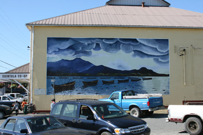 We passed a hardware store at the road near the docks. It had a huge sign almost as big as the little building painted across the top that said in big bold upper case letters: CO-HARDWARE STORE. We also noticed another building in town, the biggest and busiest also had a sign out front that said CO-OP STORE. That’s the local grocery store where the residents get their produce, meat and dry goods. We read that this was originally a Finnish settlement and that though their original scheme of a ideal society didn’t succeed, there still are descendants of the original people living here and they still hang on to their own way of living and that is to share the cost of everything and to keep prices down and to do that they have developed the Co-Op systems of buying and selling products they need and fish that the catch and sell. Seems like an affordable way for people living in remote areas like this to survive. I think it also encourages the town’s people to get along with each other. Seems like a good thing.