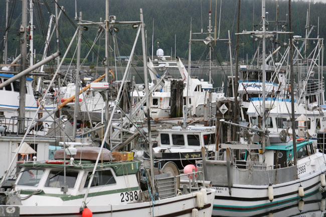 We head up the channel and watch the markers carefully remembering the last time we were here a large motor yacht took a wrong turn and found herself high and dry on the rocks, waiting a whole embarrassing day for the tide to come back in again so she could be towed in to the marina by the local tugboat. We called the marina on the radio and they said to come in to B Dock. I think it’s the same place we were when we were here the first time headed for Alaska. Larry had a challenging docking as they made him work his way around a sailboat that was blocking the entrance and another fish boat across the way. There was not much room to come in and he had to turn completely around and back her down with the current running. In the midst of it all a small sports fishing boat tried to cut him off as we were backing down. The dock master yelled a few spicy words at the guy to “back off” while we got into our slip.