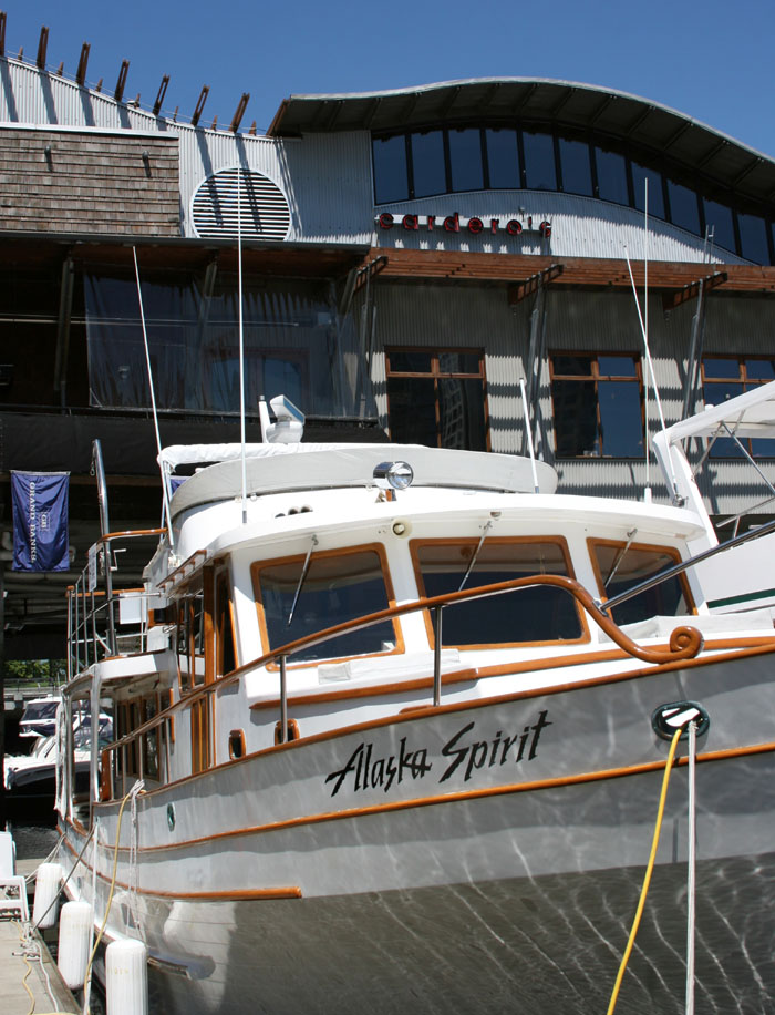 MORE COMFORTS THIS TIME This journey will be so much easier in this boat than our lovable Grand Banks. I say “lovable” again because we loved that boat. It was courageous and sturdy and always got us to port safely. There will always be a soft spot in our heart for that boat. Now we have state of the art electronics, radar, Marpa tracking, satellite communications, double back up electronic charts, auto pilot, bow thrusters, stabilizers, water maker, washer, dryer, dishwasher, sub zero frig and I could go on, but most appreciated in some instances is our warm comfy pilot house. Still, I think the challenge will be there, even with all these goodies. It will be just a lot more comfortable with things like those perfect leveling stabilizers than our last trip up here. It will be such a comfort to be in these protected waters with these modern day gadgets. We have so much respect for all those who treaded these waters without any of these modern day gadgets. To think of Cook, Drake, Vancouver and many others, who plotted the charts we are still. It’s their information that they so tirelessly gathered that we use and it is just mind boggling. To think of them searching for a Northeast Passage with no idea of what was around the bend, no satellite messaging predicting weather options from buoy’s reflected by satellites 1000s of miles away or telling you wind wave conditions, directions and knots they are blowing. It’s all too amazing. To think of the Klondikers and others heading up these very same waters many times in the middle of winter in steamships and other sea vessels not designed for these waters and severe conditions and with nothing more than what they could carry slung over their backs. There weren’t marinas with power and docks along the way and supply stops. What kind of people were these? They were strong and courageous. The history of this land is a never ending mystery and amazement to me. Now the challenge is to keep all these instruments working and have the knowledge to know how to work them and most importantly read and understand the reports they will give us.